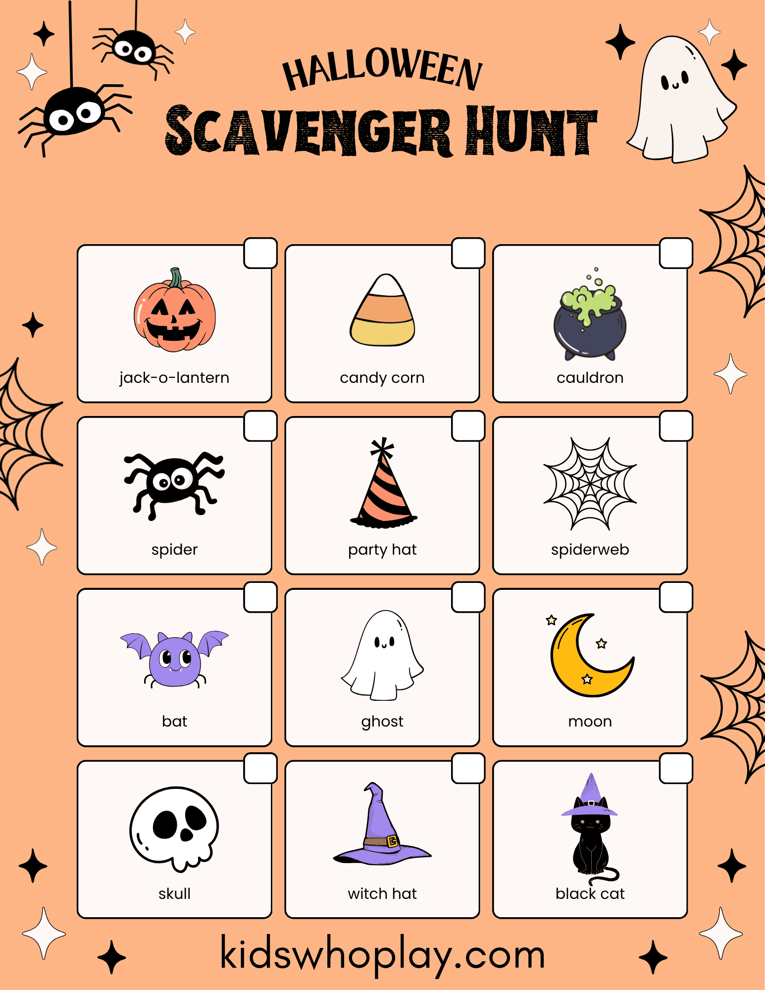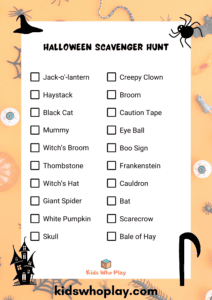 If you want something ready to go, you can download a premade Halloween scavenger hunt sheet like this one: